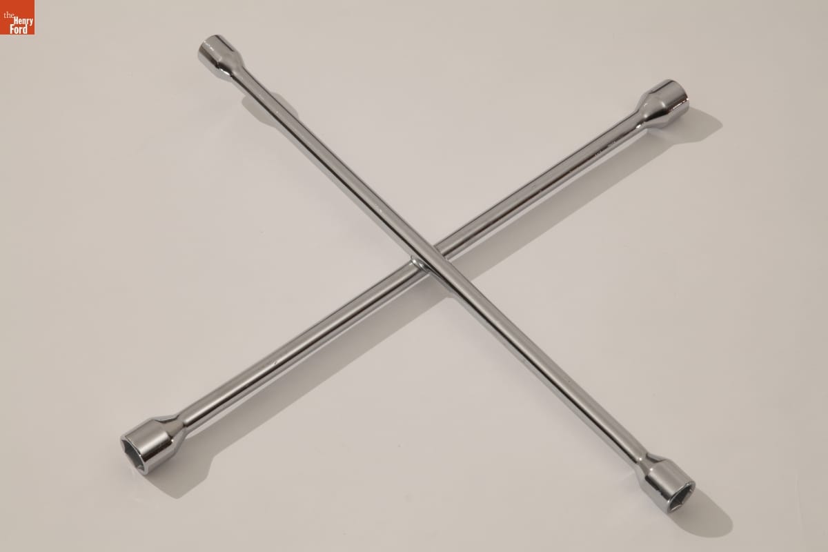 The X-shaped lug wrench, sometimes called a spider wrench, is an essential tool in the event of a flat tire. Its four differently sized sockets are designed for removing the lug nuts that hold a car's wheel onto its axle. The basic lug wrench allows a driver to remove a flat tire and replace it with a spare tire.