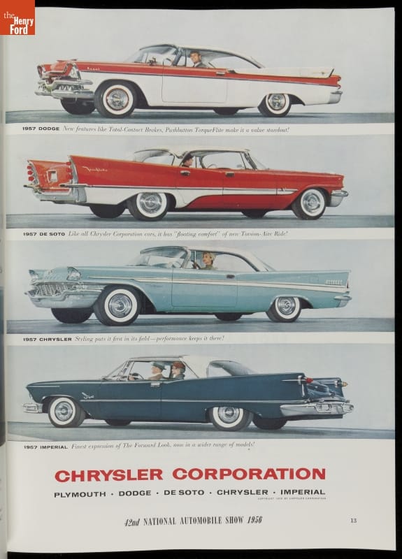 Auto shows in America date all the way back to 1900. Printed programs for these shows reflected the hopes and dreams of manufacturers, dealers and prospective buyers. Advertisements for new products filled many pages of the programs, including those featuring the "Forward Look," an innovative new look created by Chrysler director of styling Virgil Exner.