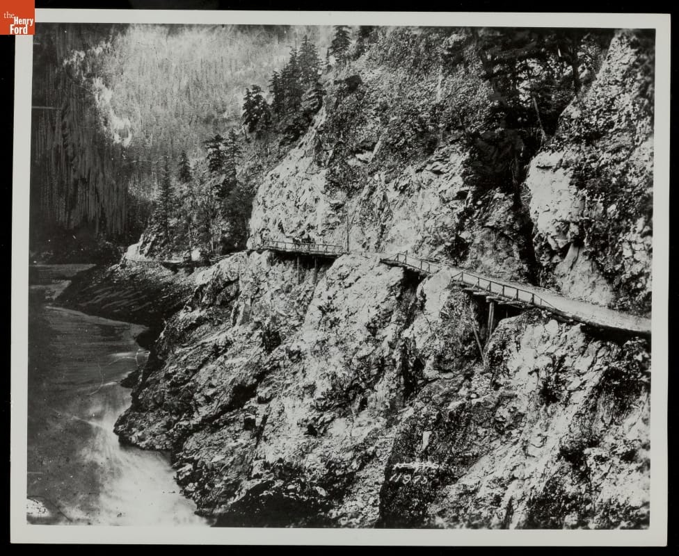 "Roads of the Pacific" was part of the Ford Exhibit, the most popular attraction at the 1935 California Pacific International Exposition. Visitors rode in brand new Ford V-8s over 14 reproductions of famous roads from around the world. To construct a realistic, immersive experience, crews used reference photographs -- like this one -- to recreate sections of historic and modern routes.