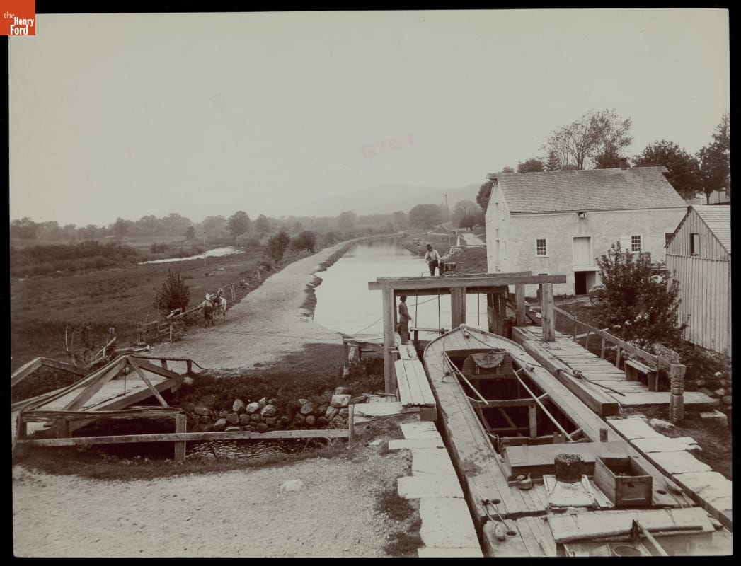 For nearly thirty years, 1895 to 1924, the Detroit Publishing Company was one of the major image publishers in the world. The company had a wide-ranging stock of original photographs, including this image of a section of the Morris Canal. The canal used a series of water-driven inclined planes to move anthracite, a type of coal, across northern New Jersey.