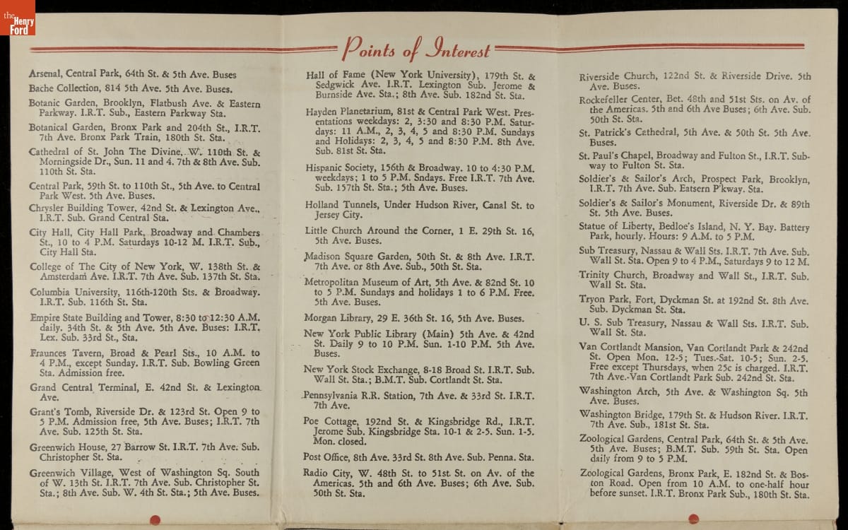 Advertising Brochure, "Subway Systems and Elevated Lines of the City of New York," circa 1930