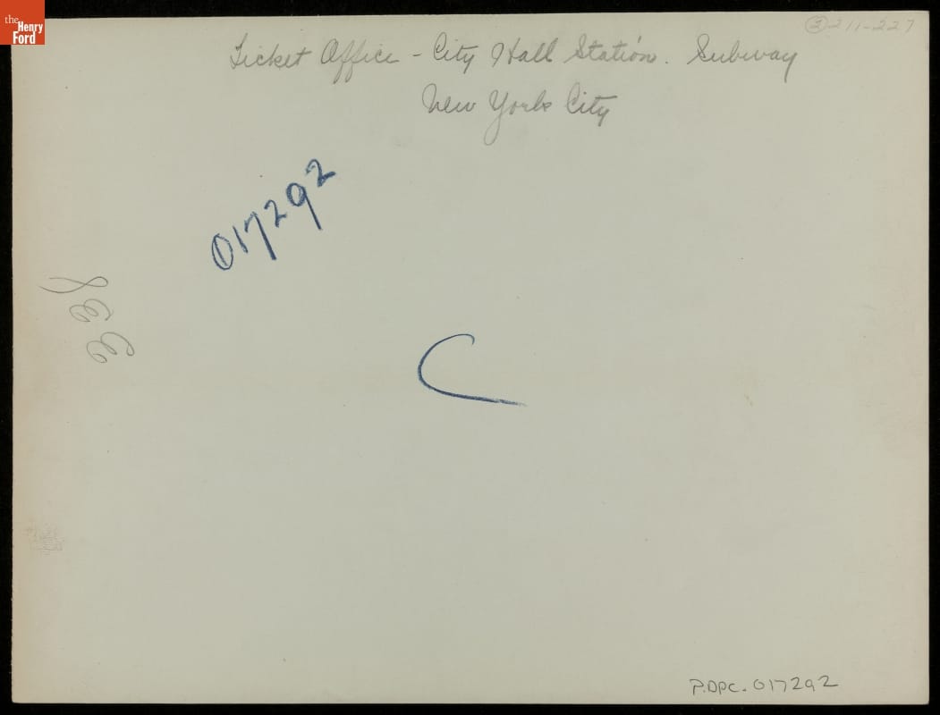 Ticket Office inside City Hall Subway Station, New York City, circa 1910