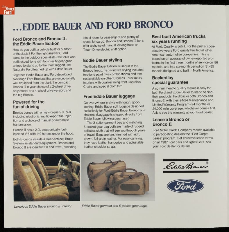 1987 Ford Bronco Catalog, "Great Go-Togethers, Eddie Bauer and Ford Bronco"