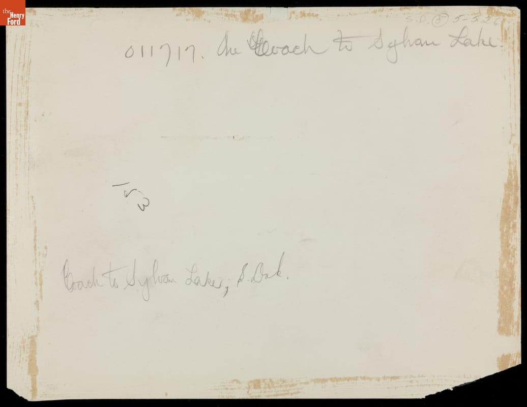 Vacationing Americans at the turn of the twentieth century often set aside time to simply look at things -- stagecoach sightseeing excursions provided an opportunity to transcend the commonplace realities of life back home. This coaching party is headed for Sylvan Lake in the Black Hills of South Dakota (now part of Custer State Park).