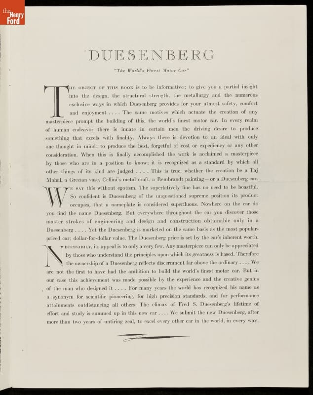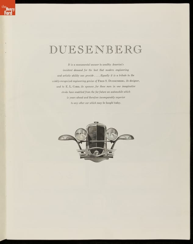 Sales Brochure, 1931 Duesenberg Automobile