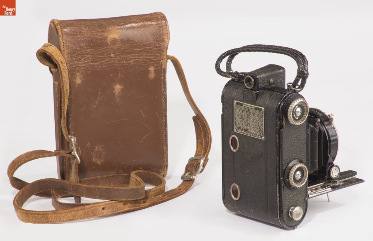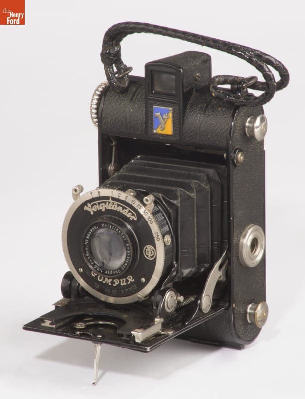 Folding cameras were designed to be portable and rugged. The lens sits at the end of a collapsible bellows system, often adjustable to provide better focus. The camera's back typically contains 120 roll film, with multiple exposures on a roll. Popular from 1900 until the introduction of 35mm film in 1945, many amateur photographers owned cameras like this.