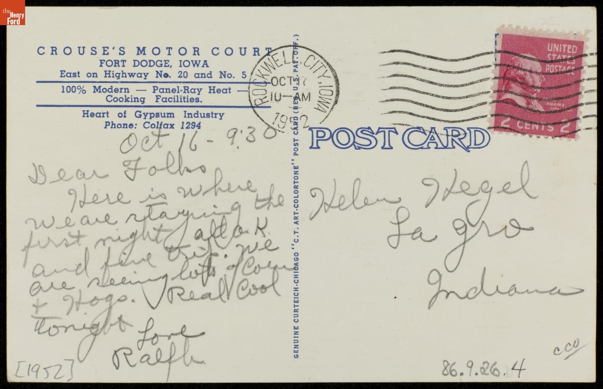 "Crouse's Motor Court- Five Minutes to Heart of City," Fort Dodge, Iowa, 1952