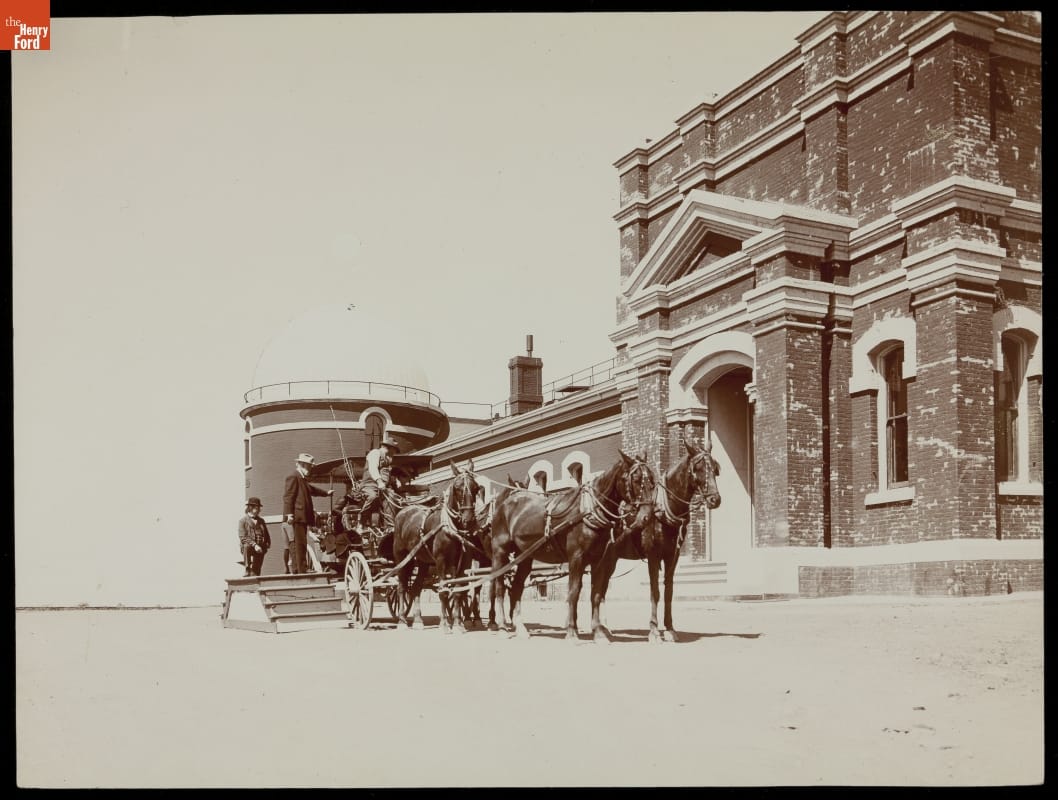 Vacationing Americans at the turn of the twentieth century often set aside time to simply look at things -- stagecoach sightseeing excursions provided an opportunity to transcend the commonplace realities of life back home. This coaching party stopped at Lick Observatory atop Mount Hamilton, east of San Jose, to take in scenic views of California's Santa Clara Valley.