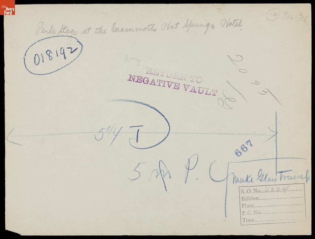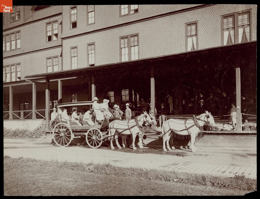 Park Stage at Mammoth Hot Springs Hotel, Yellowstone National Park, Wyoming, circa 1905