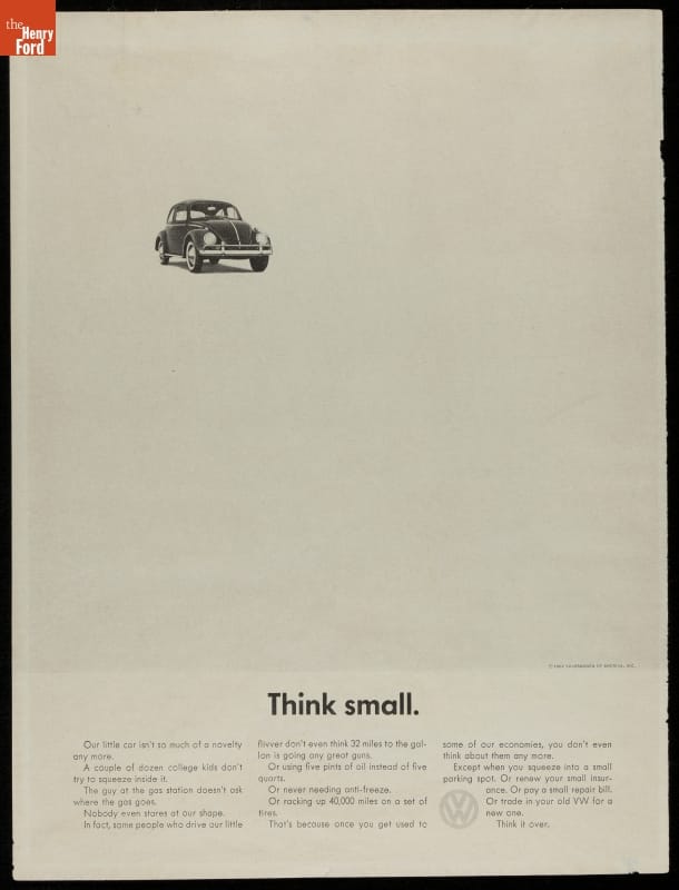 Advertisement for Volkswagen of America, "Think Small," 1962