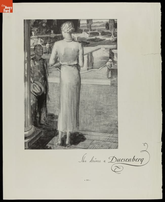 Advertisement for Duesenberg Automobile & Motors Company, "She Drives a Duesenberg," 1934