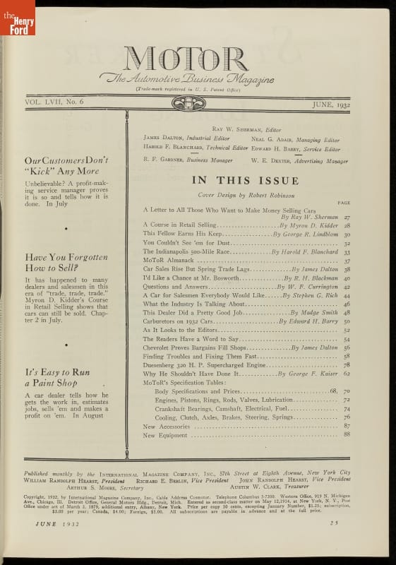 Motor magazine became a useful trade publication for automobile dealers and service station owners and mechanics. Readers found automobile-related articles, photographs, illustrations and advertisements needed to promote vehicle sales and ensure proper maintenance and repair.