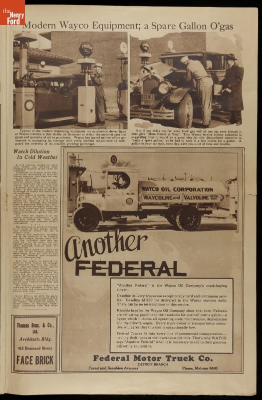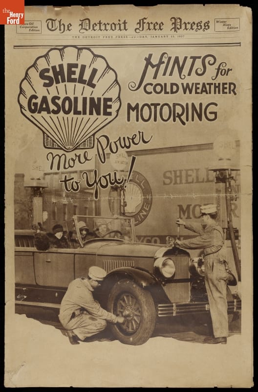 Detroit Free Press Advertising Supplement, "Hints for Cold Weather Motoring," Wayco Oil Corporation Edition, 1927
