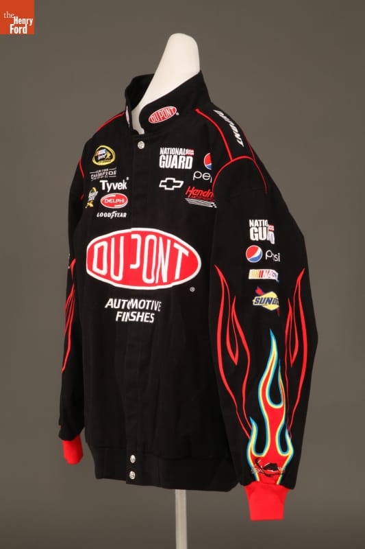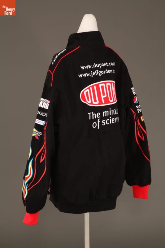 NASCAR's popularity soared in the 1990s and 2000s. With its fan base growing in size and diversity, the sport attracted new sponsors. Traditional automotive-related brands, like DuPont and Sunoco, were joined by non-automotive brands like Sprint, Tyvek, Pepsi and even the National Guard. NASCAR-themed souvenirs, like this jacket, increased sponsors' reach beyond race day.