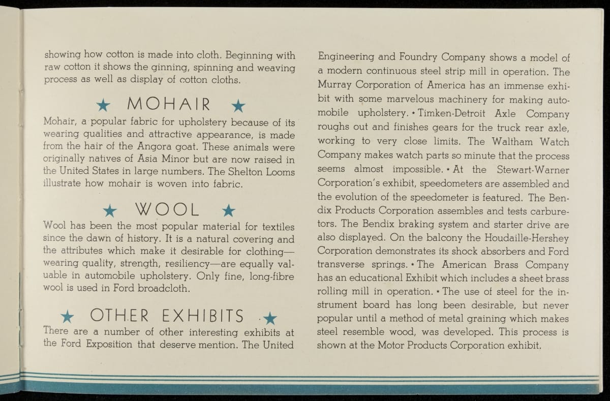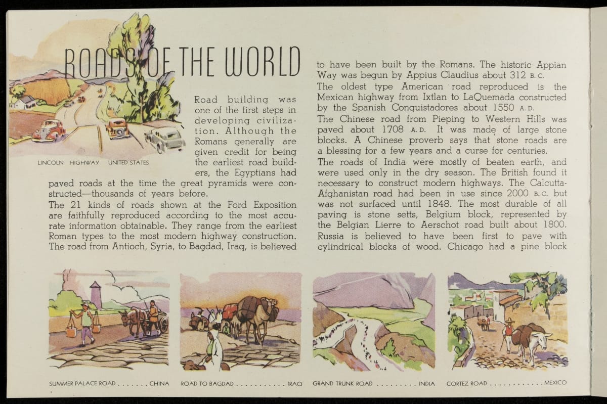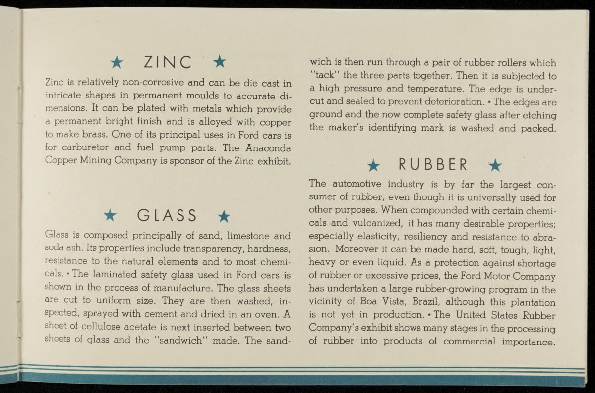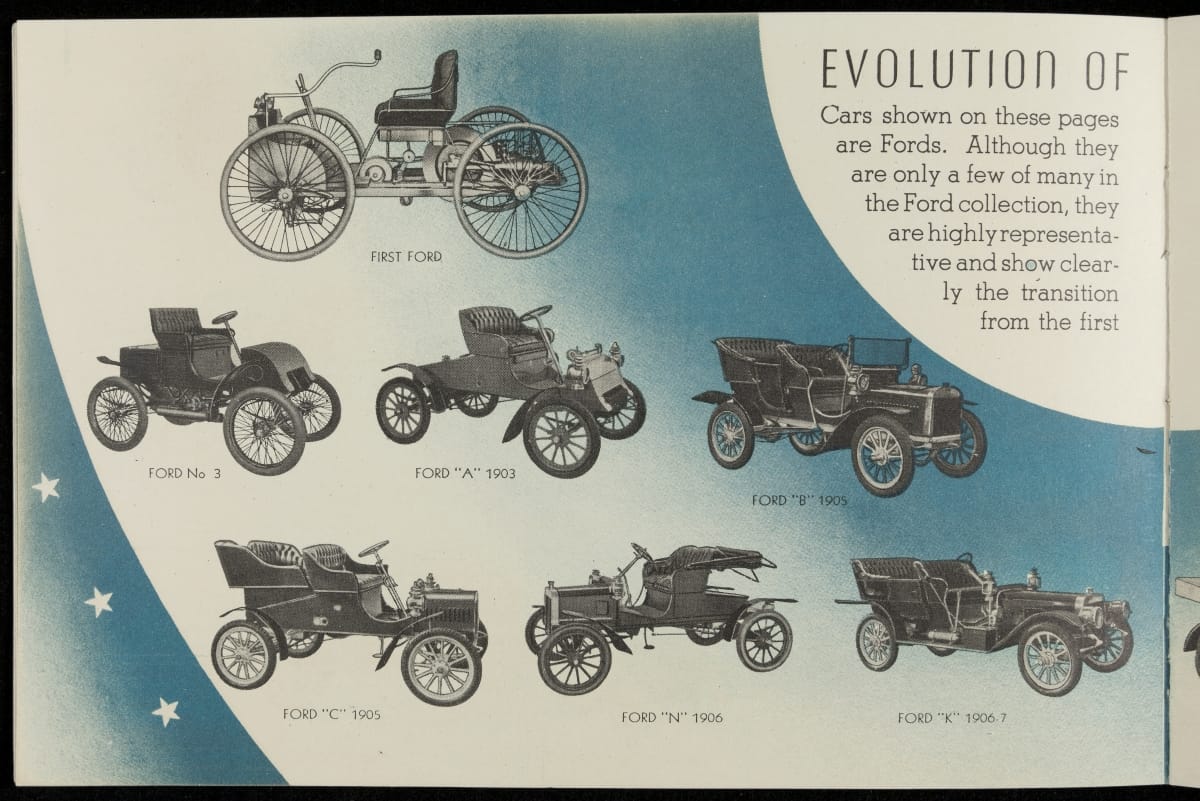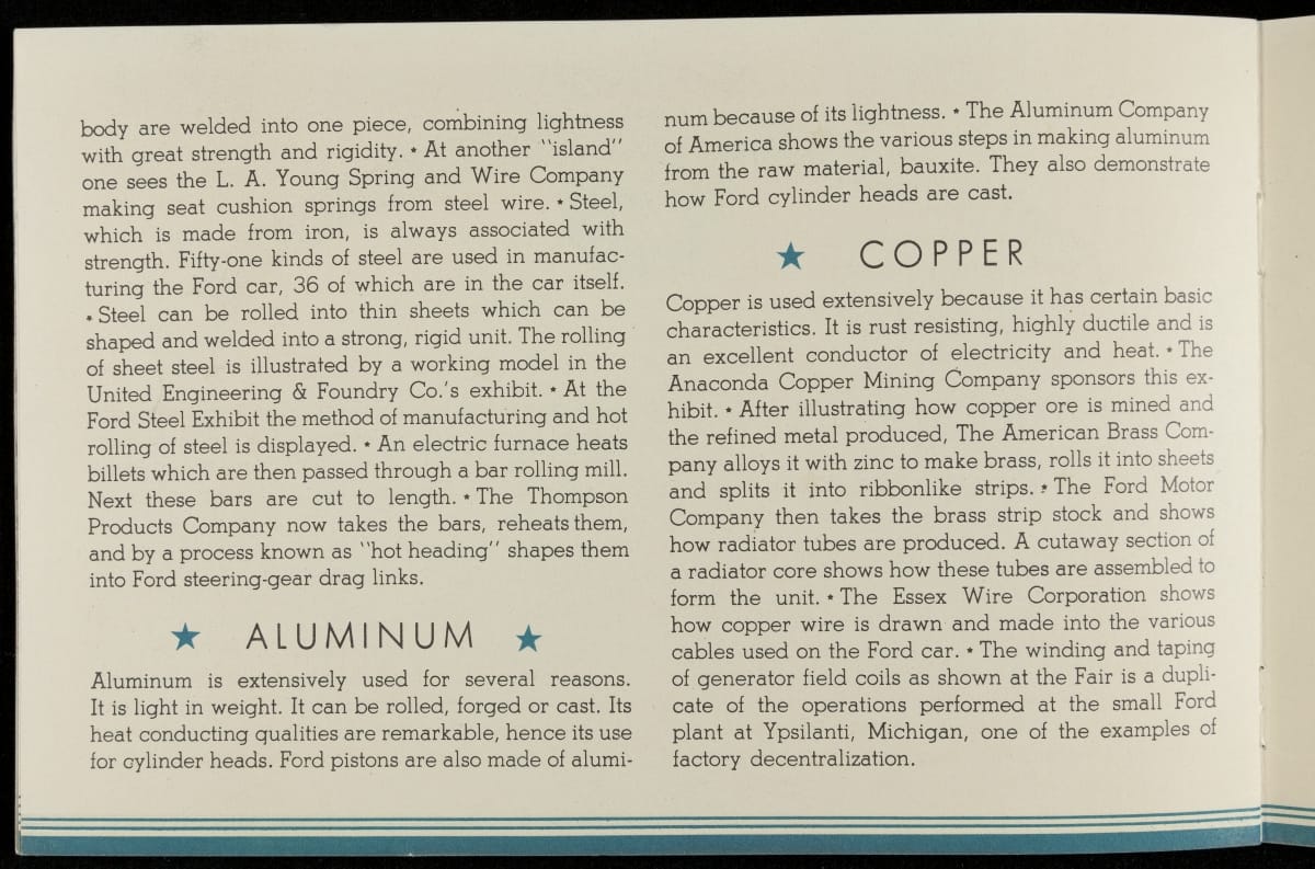 Chicago's 1933-34 Century of Progress Exposition used the theme of progress to encourage optimism during the Depression. The 11-acre Ford Motor Company exposition became the most talked-about exhibit of 1934, featuring a variety of industrial demonstrations and informative displays. Ford produced this booklet as a souvenir for fairgoers who visited the Ford Building.