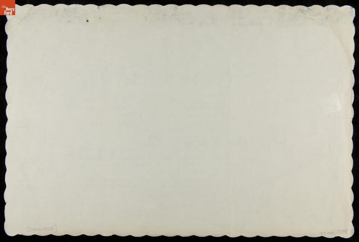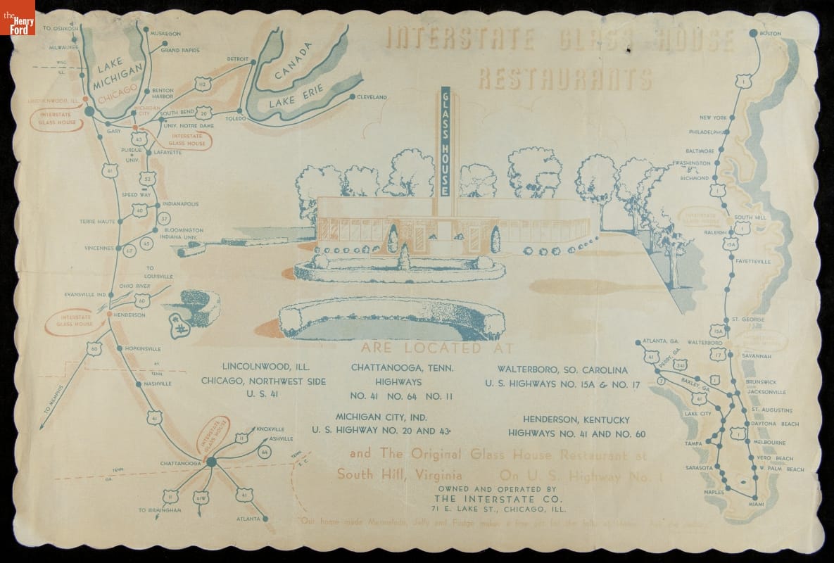 Placemat, Interstate Glass House Restaurant, circa 1950