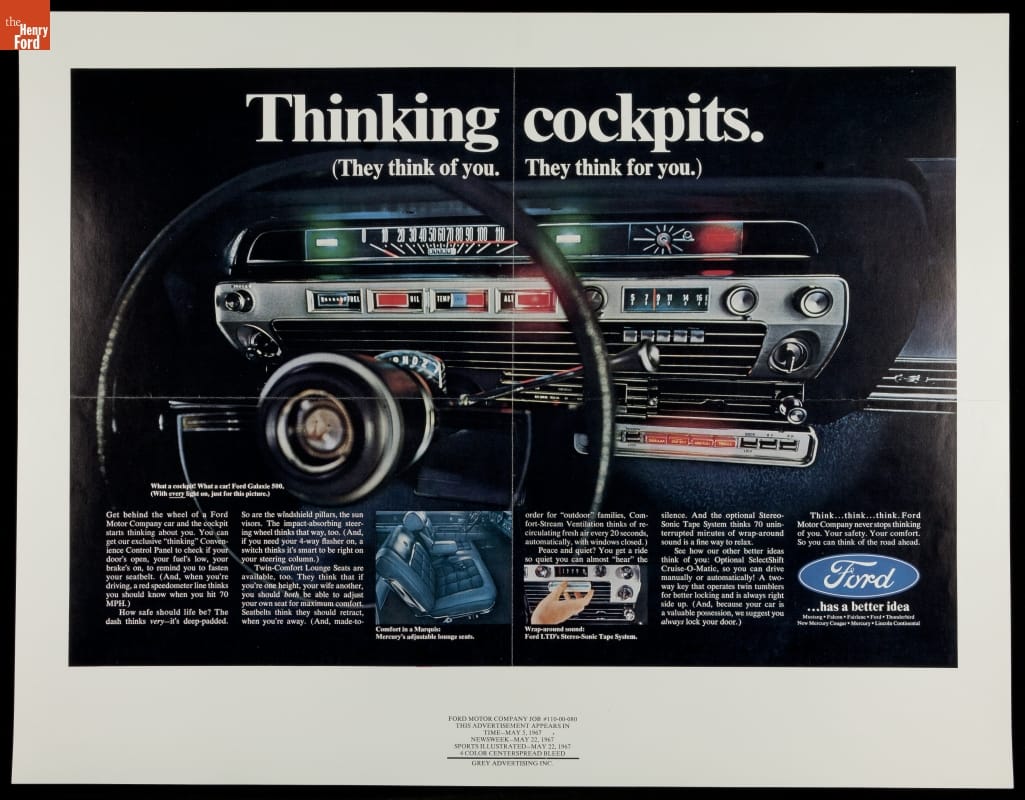 "Thinking Cockpits (They Think of You. They Think for You.)" Ford Motor Company Advertising Proof, 1967