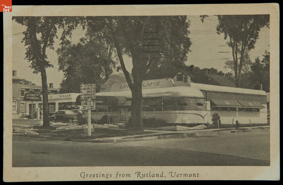 After World War II, Americans were eating out more than ever before. Diners became familiar sights--especially in New England (where the industry originated), New York, and New Jersey (where the industry was moving). Their new, modern streamlined forms, like the diner shown here, represented efficiency and progress--perfect embodiments of a nation on the go.