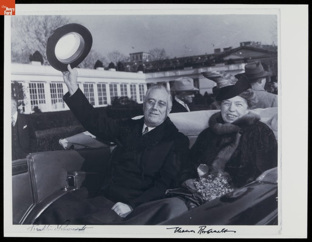 President Franklin D. Roosevelt and Eleanor Roosevelt Seated in Limousine, circa 1940
