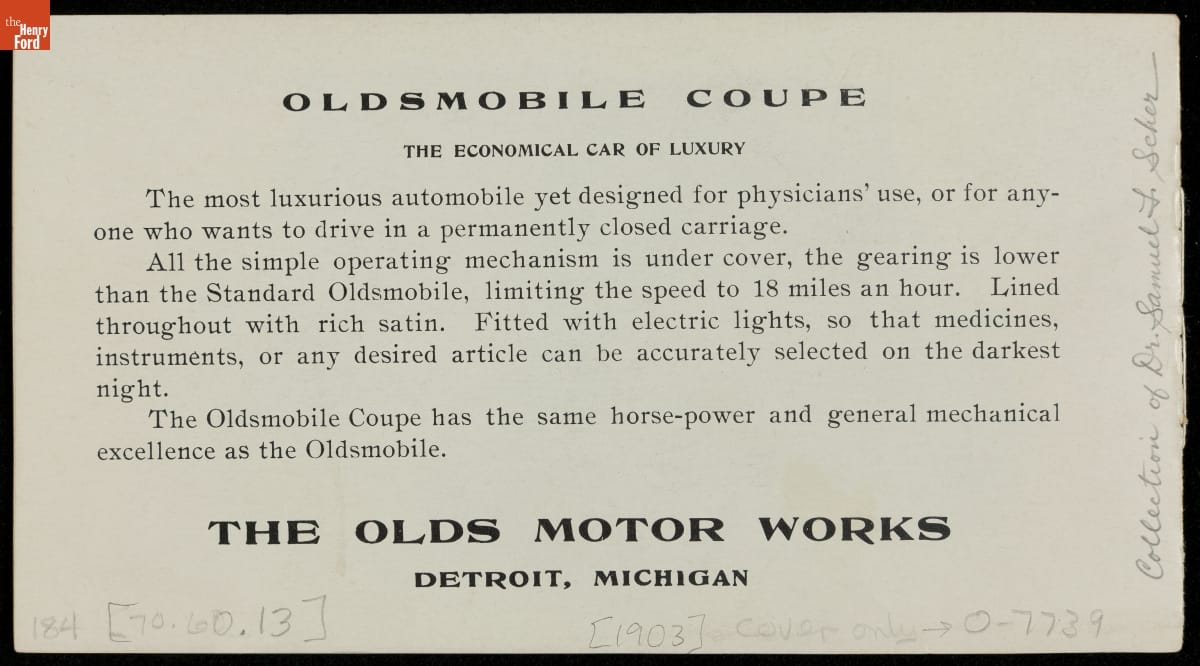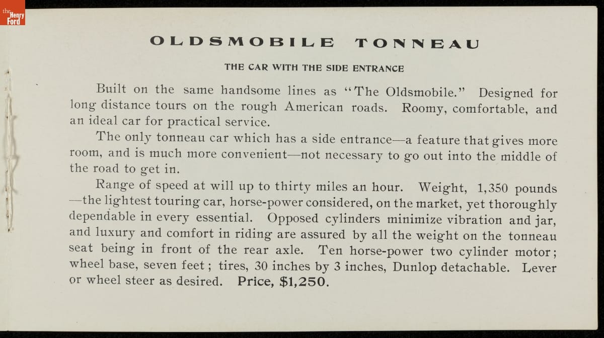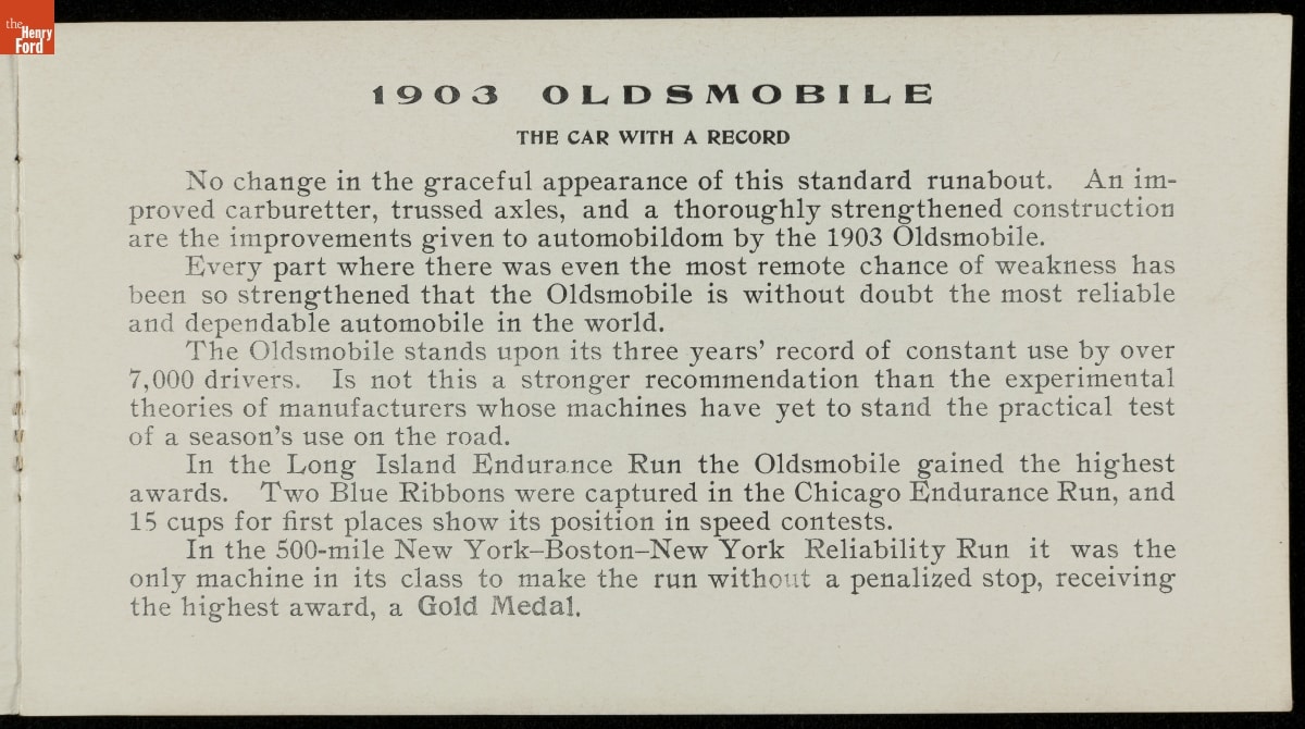Sales Brochure for the 1903 Oldsmobile, Olds Motor Works, "The Oldsmobile Ahead"