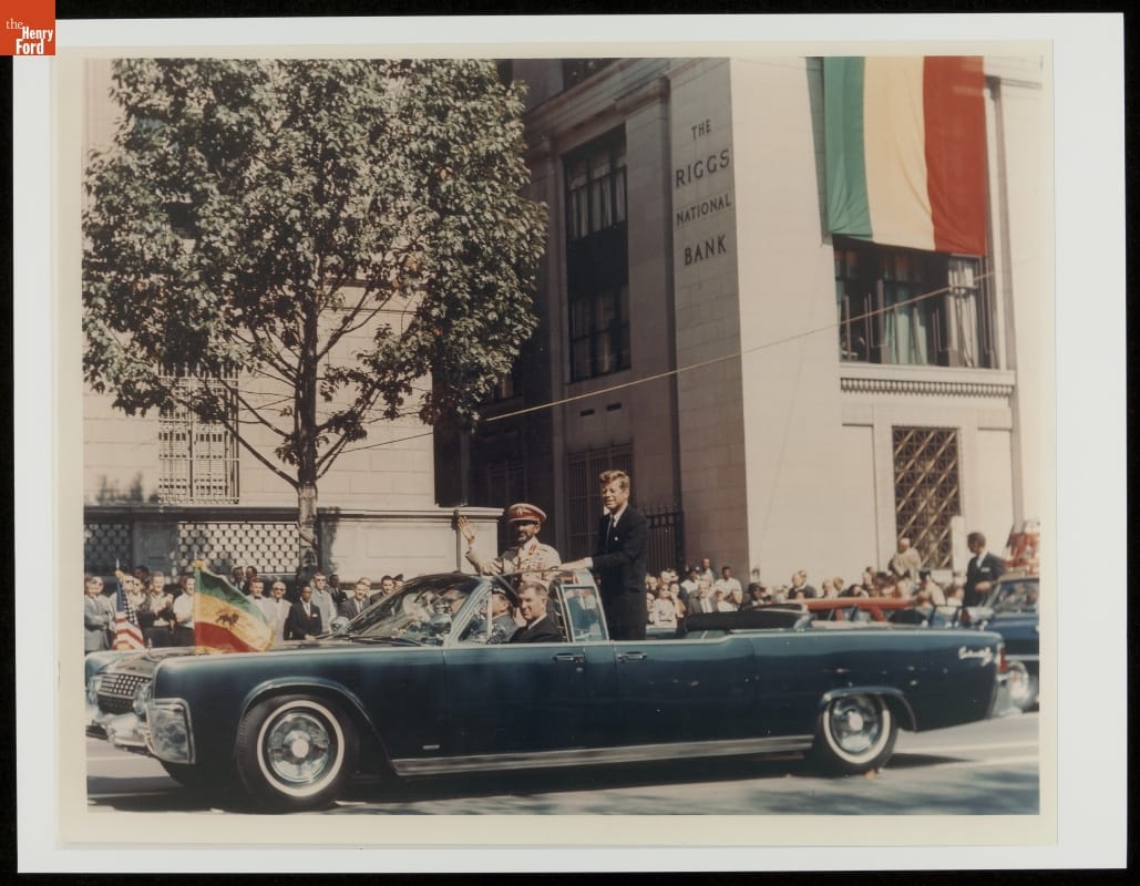 President Kennedy and Emperor Haile Selassie in the 1961 Lincoln Continental Presidential Limousine, Washington, D.C., 1963