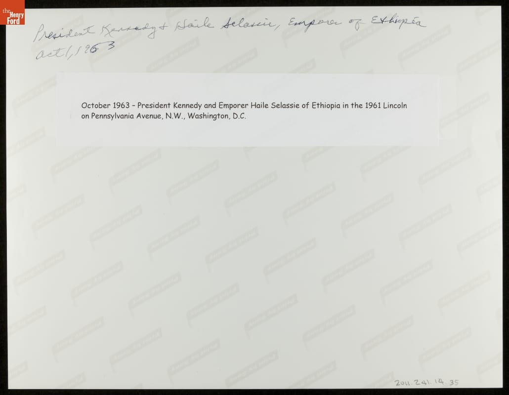 October 1963 - President Kennedy and Emporer [sic] Haile Selassie of Ethiopia in the 1961 Lincoln on Pennsylvania Avenue, N.W., Washington, D.C.