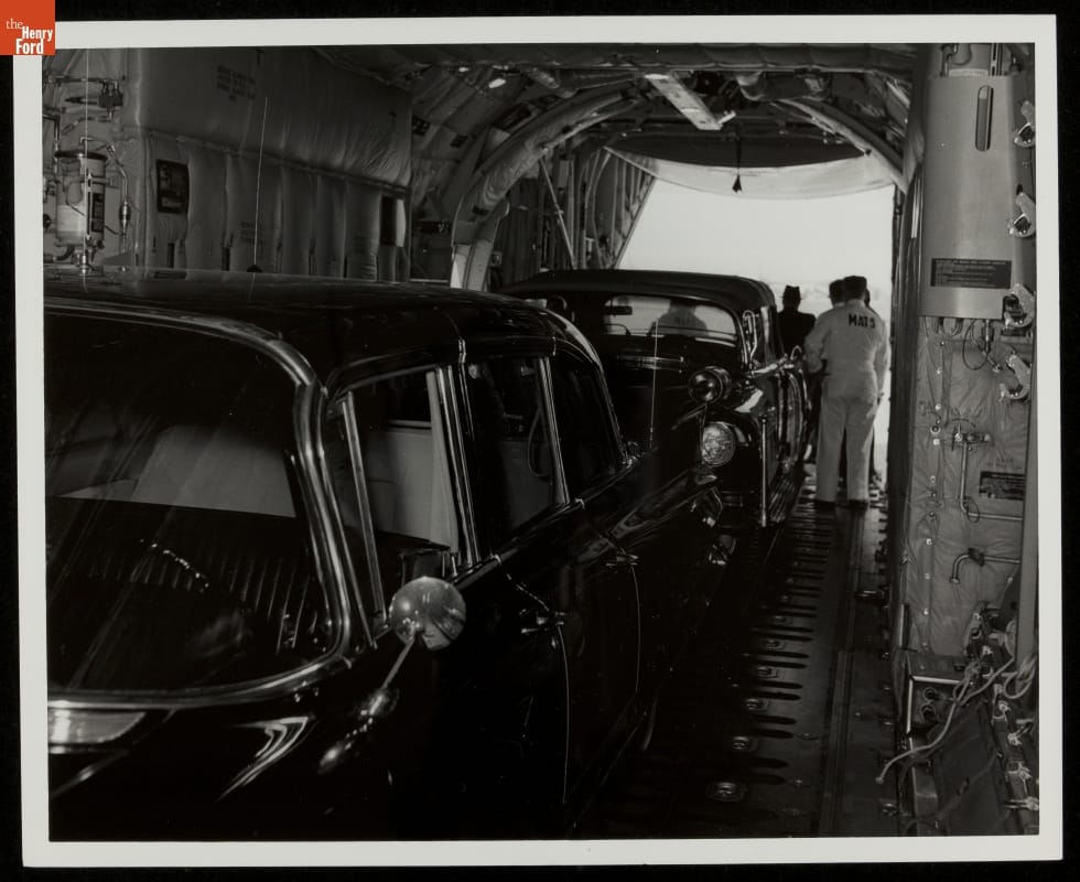 Two Presidential Cadillac Limousines Loaded inside Lockheed Hercules C-130 Airplane, 1964