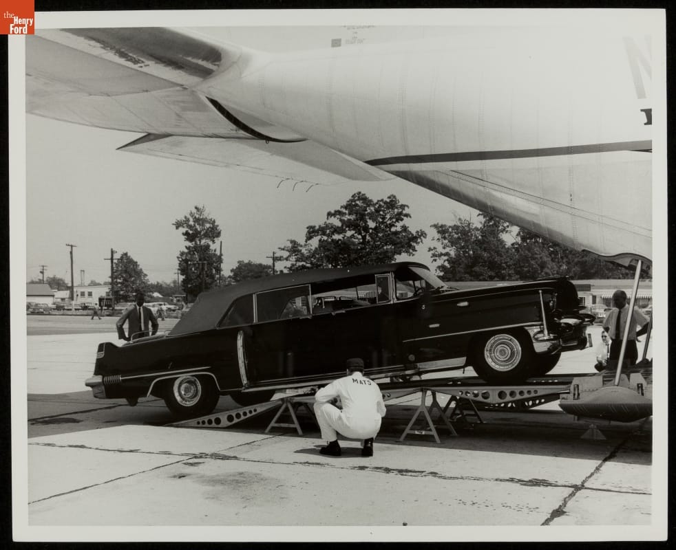 Loading 1956 Cadillac Presidential Limousine into C-130 Hercules Transport Plane, Andrews Air Force Base, 1964