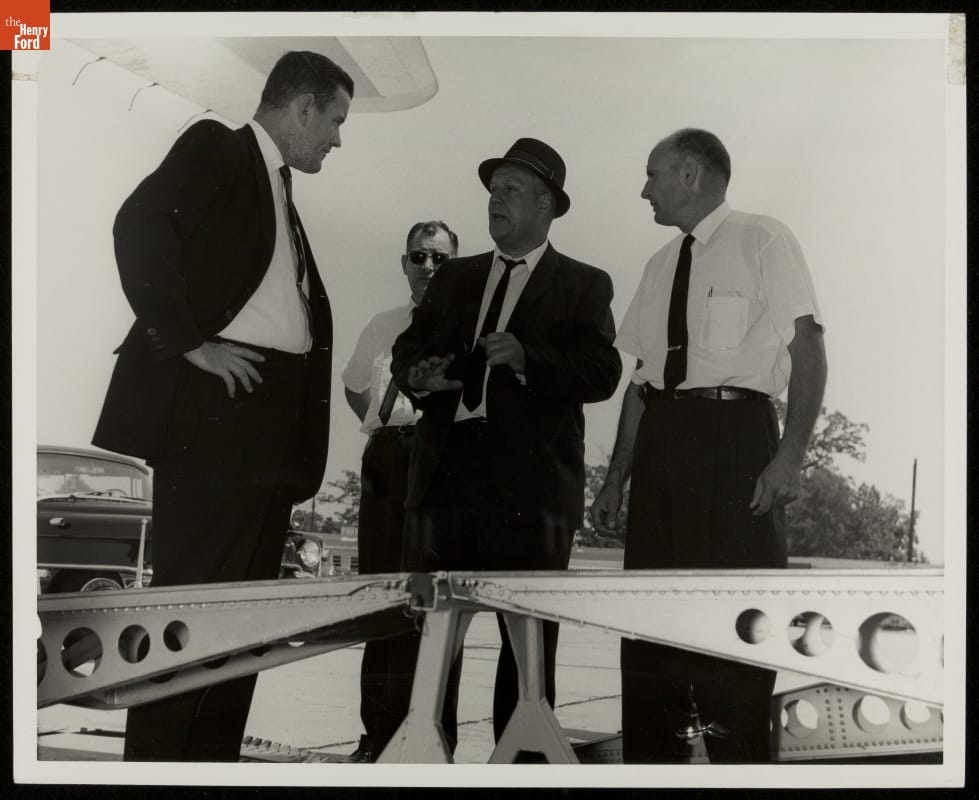 Special Agent Morgan L. Gies Discussing New Airplane Loading Ramps with Engineers, Andrews Air Force Base, 1964