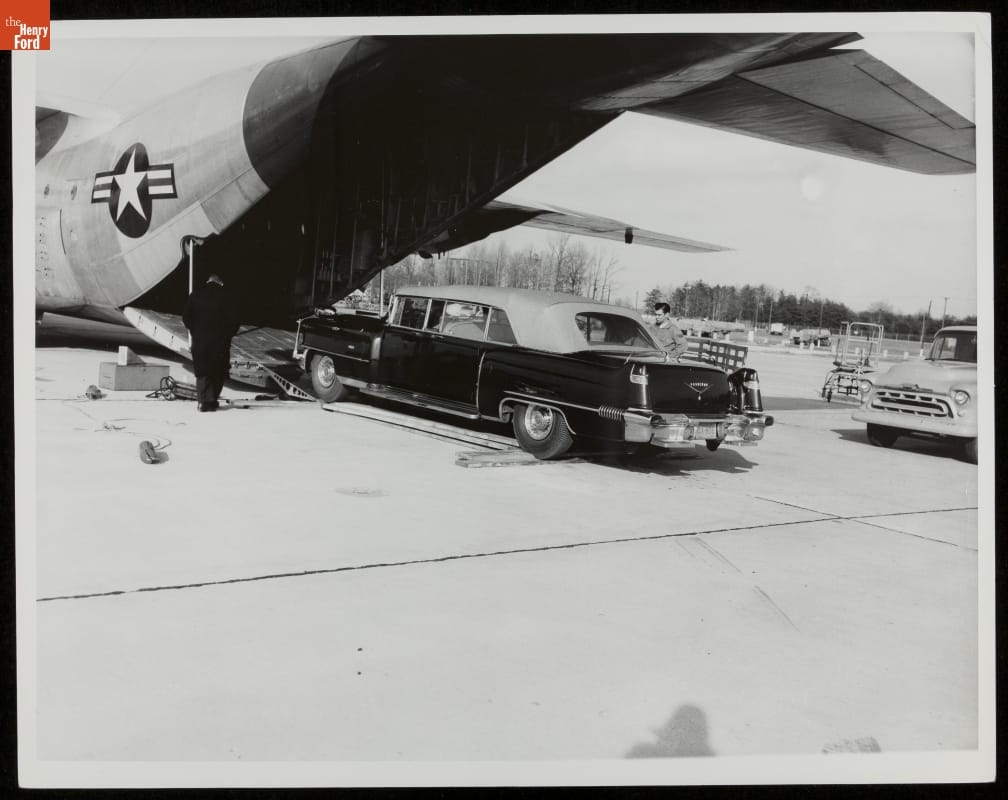 Loading the 1956 Cadillac Presidential Limousine into C-130 Hercules Transport Plane, 1964