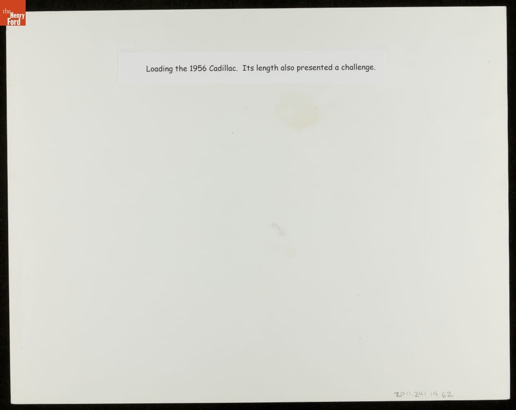 Loading the 1956 Cadillac. Its length also presented a challenge.