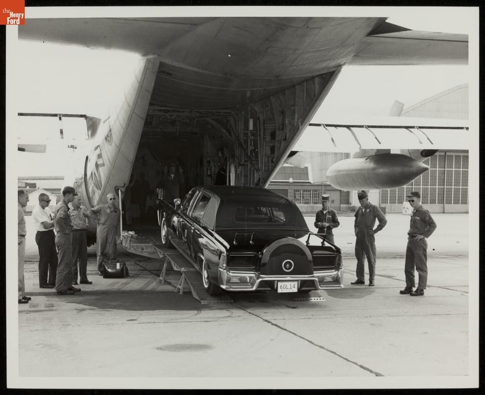 Loading the Post-"Quick Fix" 1961 Lincoln Continental Presidential Limousine into an Airplane, 1964