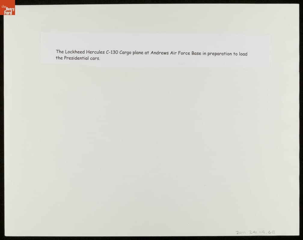 Around 1960, the United States Secret Service began using one of Lockheed's versatile C-130 Hercules transport aircraft to carry presidential vehicles. This was faster and more direct than shipping state cars ahead of the President via railcar or boat -- though loading lengthy automobiles into the plane's cargo compartment was a persistent challenge.