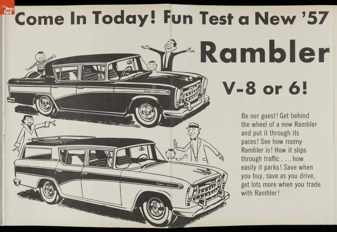In the 1950s, Nash competed with Chrysler, Ford, and General Motors by offering something the Big Three didn't: small cars. The Nash Rambler station wagon was 10 inches shorter than its rivals, and its 30 mile-per-gallon fuel economy was twice that of bigger wagons. Nash portrayed the Big Three's cars as oversized dinosaurs by comparison.