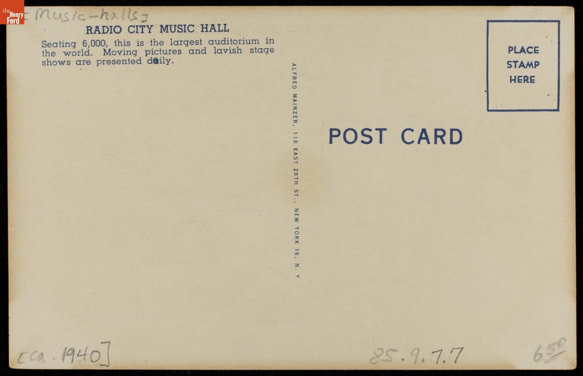 "New York City Radio City Music Hall," circa 1940