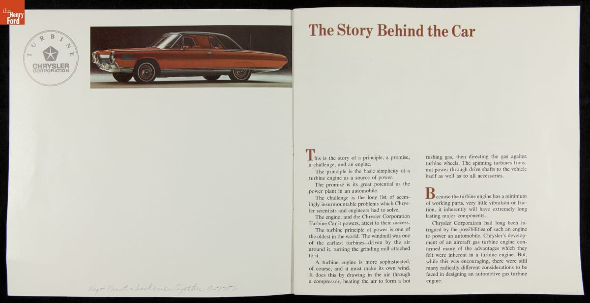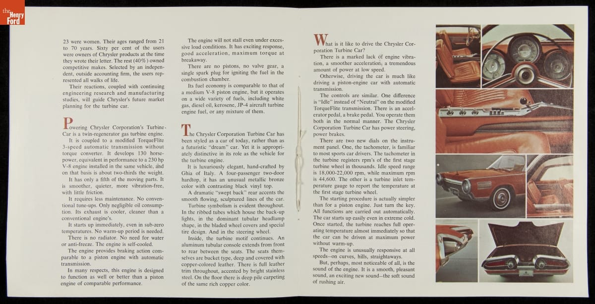 Sales Brochure for the Chrysler Corporation Turbine Car, 1966