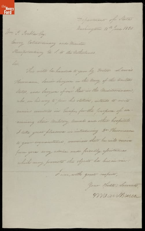 Letter from Martin Van Buren to William Pitt Preble, 1830