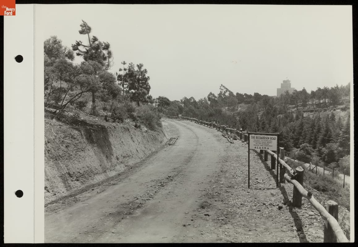 "Roads of the Pacific" was part of the Ford Exhibit, the most popular attraction at the 1935 California Pacific International Exposition. Visitors rode in brand new Ford V-8s over 14 reproductions of famous roads. This section representing the Richardson Highway, Alaska's first major road, contributed to the immersive "Roads of the Pacific" experience.