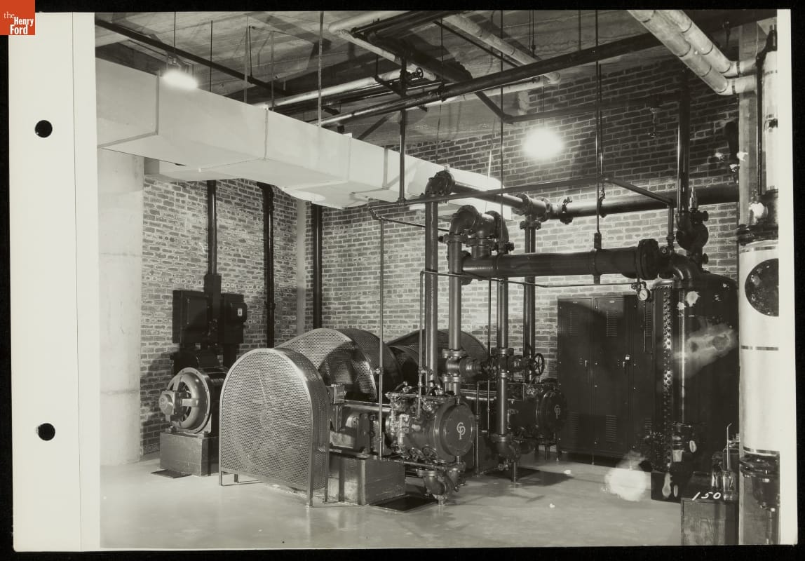 Ford Motor Company poured resources into what became the most popular exhibition at the 1935 California Pacific International Exposition. This photograph shows the power facility that fueled Ford's $2 million display in Balboa Park, San Diego. Highlights of the exhibit included the fair's largest building, manufacturing demonstrations, a 3,000-seat amphitheatre, elaborate fountains, and special nighttime lighting effects.