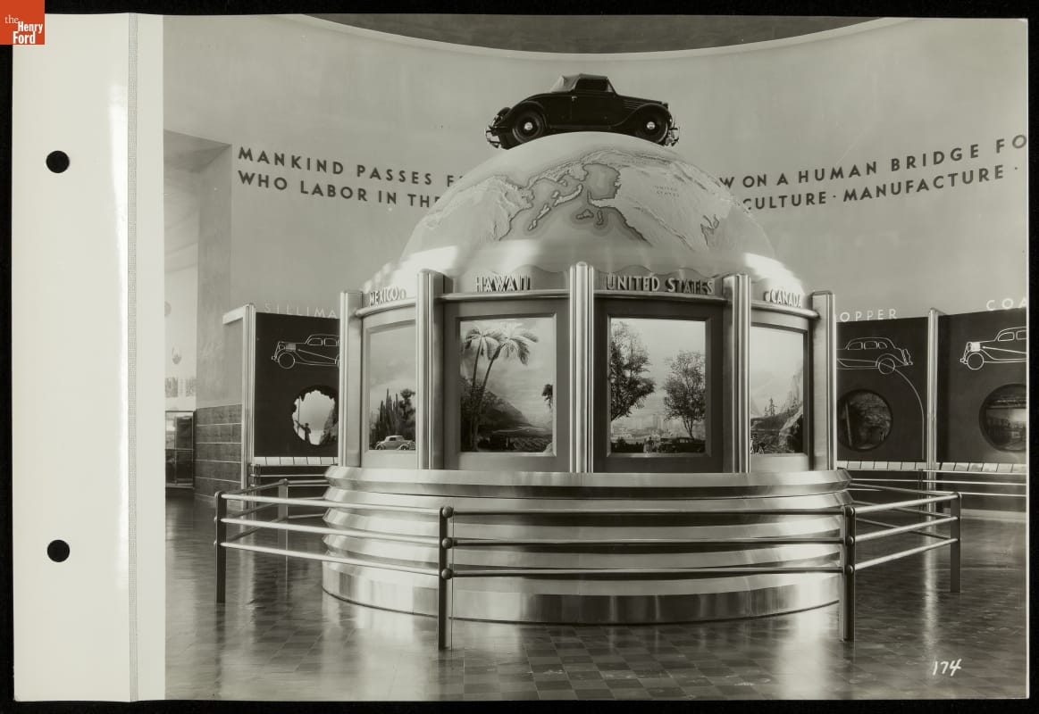 Through the 1930s, Ford Motor Company poured resources into exhibitions at regional and world's fairs. Henry Ford believed strongly in the educational value of such displays, and a corporate presence at the fairs benefitted public relations. Ford's popular exhibits and demonstrations -- pictured here in the 1935 California Pacific International Exposition Ford Building -- generated lots of publicity.