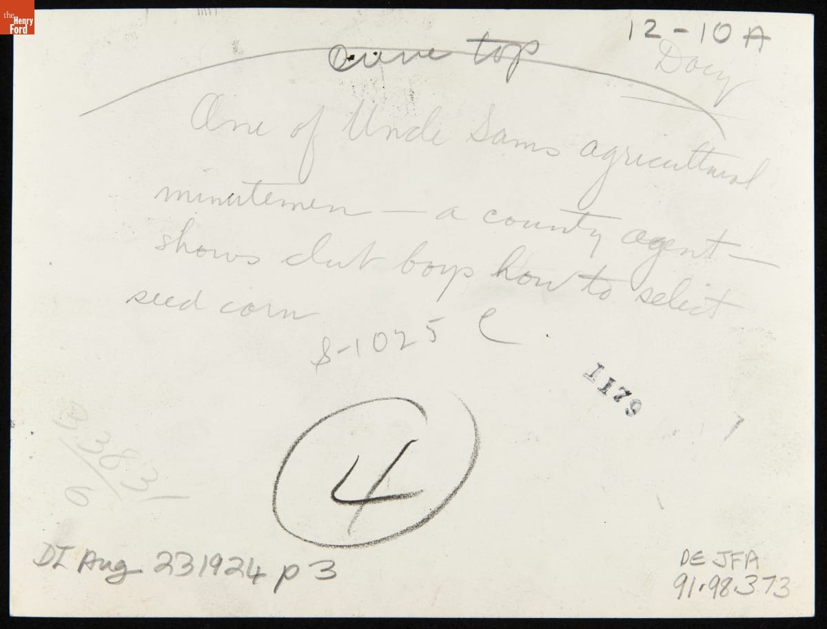 A County Agent Shows Club Boys How to Select Seed Corn, 1923-1924