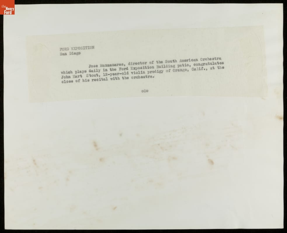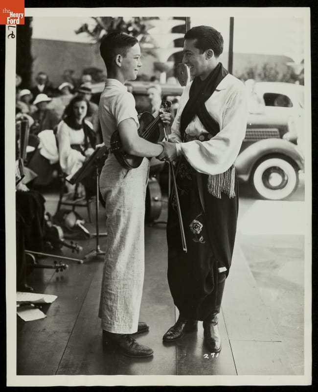 Conductor Jose Manzanares and Young Violinist John Hart Stout, California Pacific International Exposition, San Diego, 1935