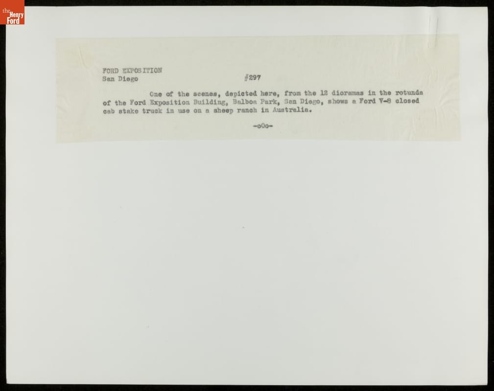 Through the 1930s, Ford Motor Company poured resources into exhibitions at regional and world's fairs. Henry Ford believed strongly in the educational value of such displays, and a corporate presence at the fairs benefitted public relations. Ford's popular exhibits and demonstrations -- pictured here in the 1935 California Pacific International Exposition Ford Building -- generated lots of publicity.