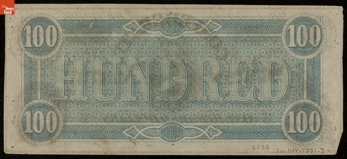 Confederate Currency, Confederate States of America, One Hundred Dollars, 1864