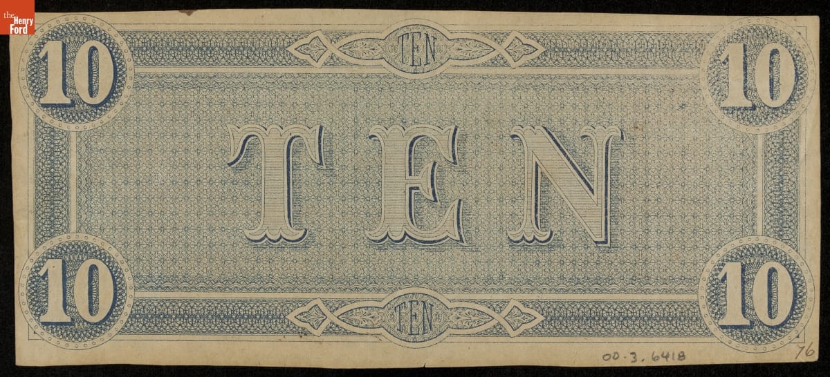Confederate Currency, Confederate States of America, Ten Dollars, 1864