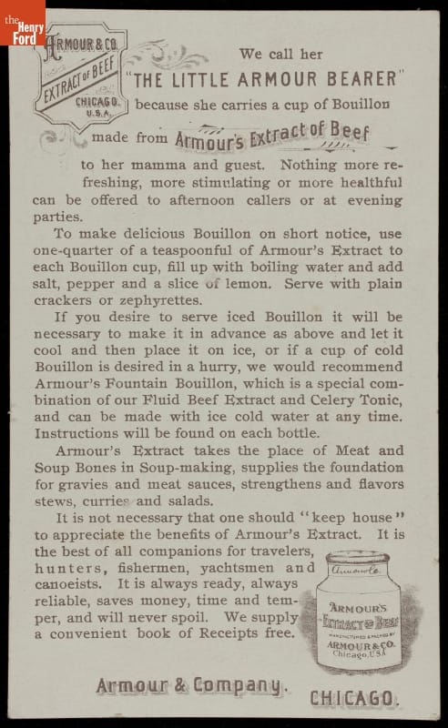 Trade Card for Armour's Extract of Beef, "The Little Armour Bearer," 1892