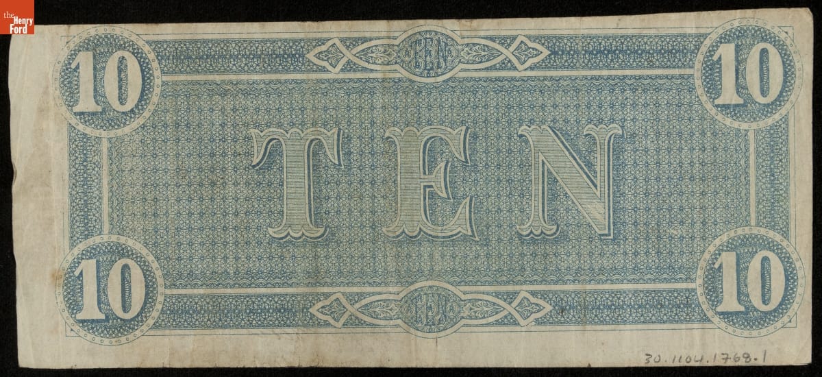 Confederate Currency, Confederate States of America, Ten Dollars, 1864