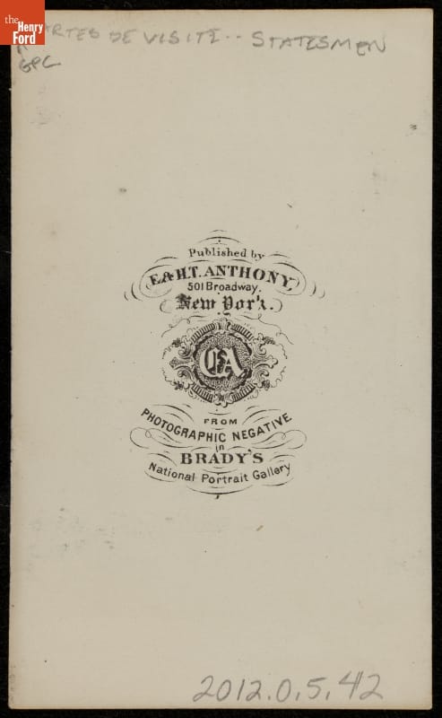 Published by / E. & H.T. ANTHONY / 501 Broadway / New York / FROM / PHOTOGRAPHIC NEGATIVE / IN / BRADY'S / National Portrait Gallery