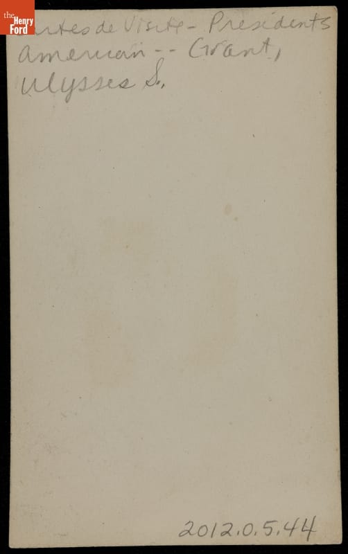 Cartes-de-visite, small, professionally made photographs on cardboard stock, remained popular in the United States from the Civil War in the 1860s through the 1880s. Many were given to friends and loved ones, but enterprising photographers also produced images of famous individuals to sell to the collecting-crazed public. Celebrities, politicians, and military officers, such as General Ulysses S. Grant, were popular subjects.