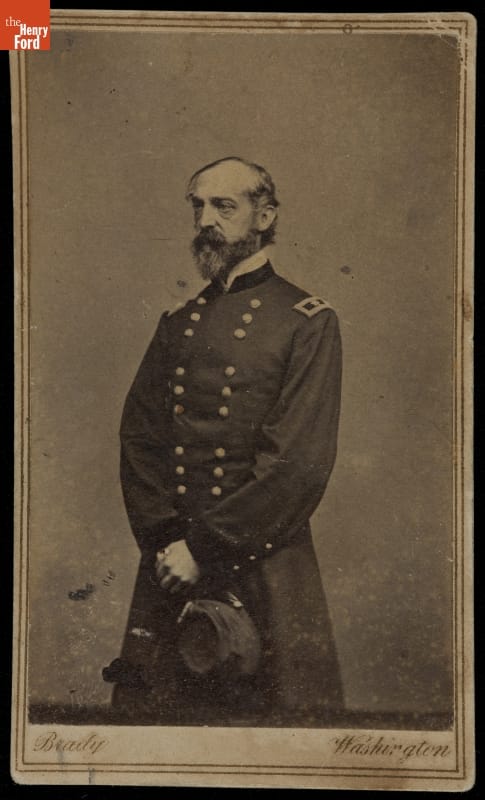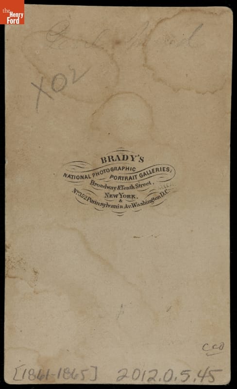 Cartes-de-visite, small, professionally made photographs on cardboard stock, remained popular in the United States from the Civil War in the 1860s through the 1880s. Many were given to friends and loved ones, but enterprising photographers also produced images of famous individuals to sell to the collecting-crazed public. Admired politicians or military officers, such as General George Meade, were popular subjects.